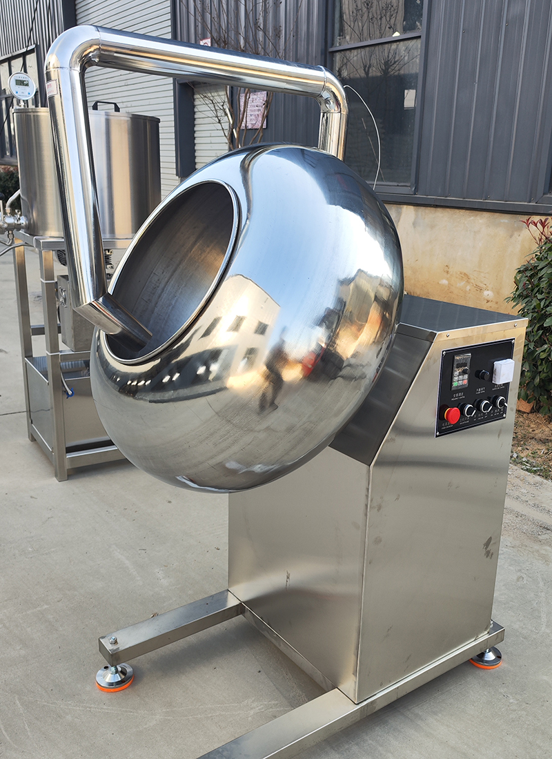 chocolate coating pan adopts food grade stainless steel, passed CE certification, can be assured to use, automatic operation, for you to save labor costs.